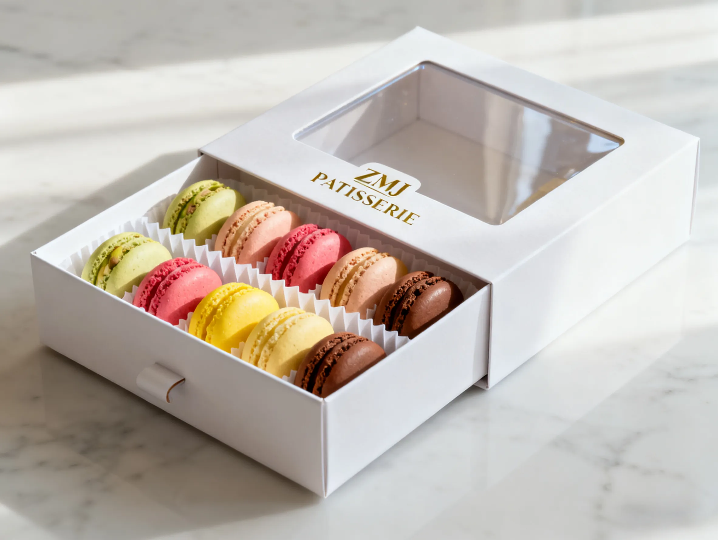 Hľadáte baliace krabičky na makrónky? ZMJ Packaging ponúka na mieru tlačené darčekové krabičky na makaróny. Každá škatuľka má zabudované tlmiace vložky a prehľadné okienko displeja. Všetky produkty sú vyrobené z materiálov, ktoré spĺňajú normy bezpečnosti potravín. Ponúkame skvelé veľkoobchodné ceny a nemusíte objednávať minimálny počet položiek. Vyberte si naše obalové škatule, ktoré sú šetrné k životnému prostrediu, aby ste zaistili, že vaše lahodné pečivo zostane bezpečné a zdravé.